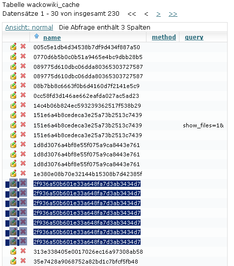 | Description | there is something wrong with the cache, multiple records for one hash (?) It seems after each cache update wacko just adds another record this leads to thousends and thousends unnecessary records | ||||