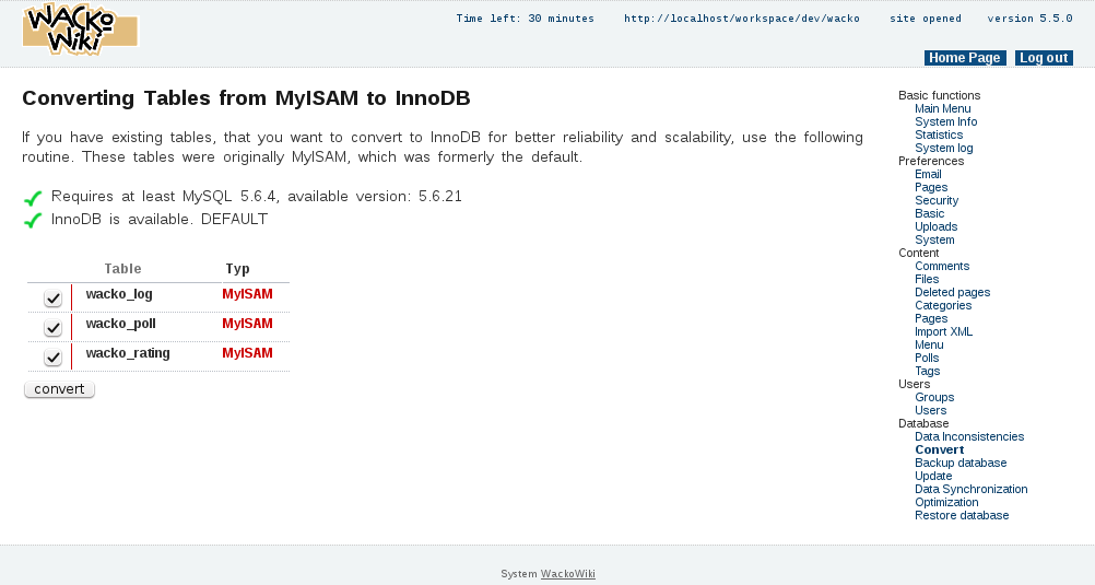 | Summary | 0000449: convert tables from myisam to innodb engine | ||||