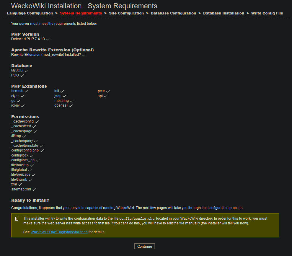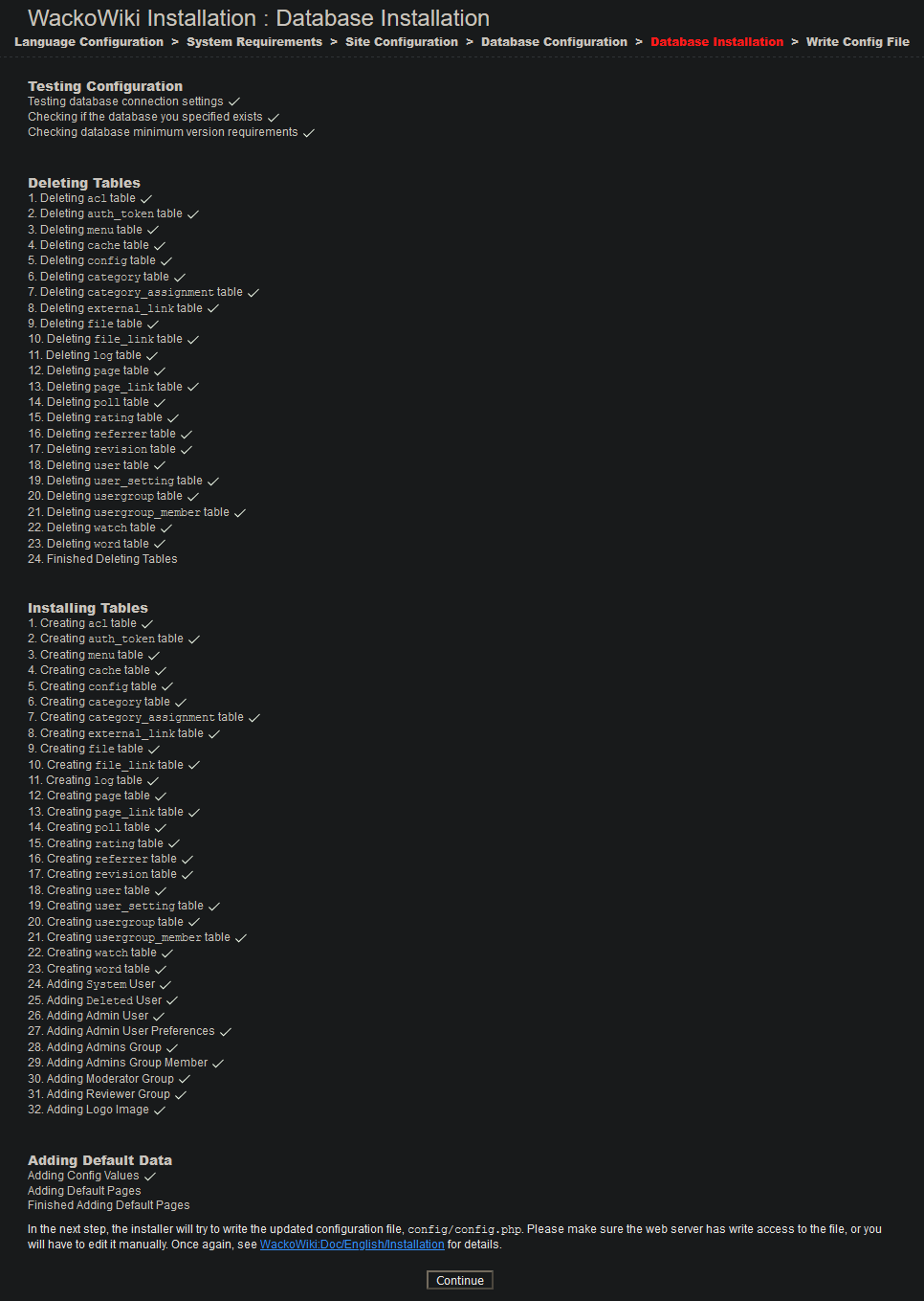 This install was successful. I now see the WackoWiki front page on my localhost domain