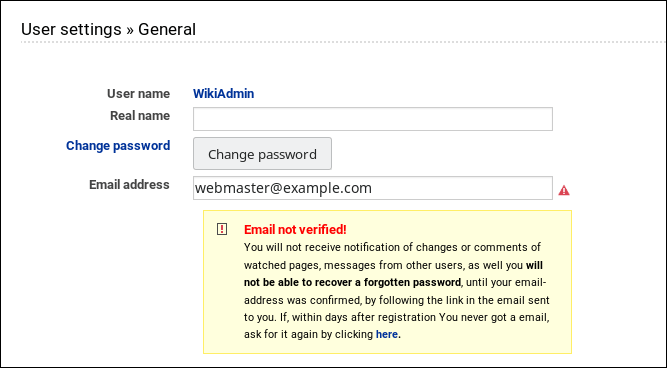 Now the user tries to recover his password via the password recovery function but is told that his email never has confirmed and therefore he can't get an email.