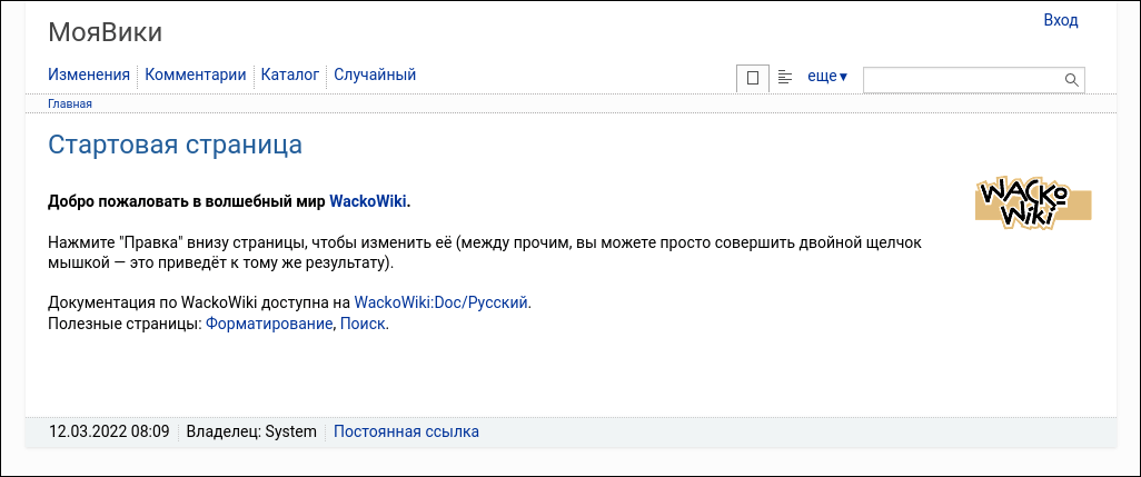 Здесь вы найдете несколько скриншотов, полезных для начала работы с WackoWiki