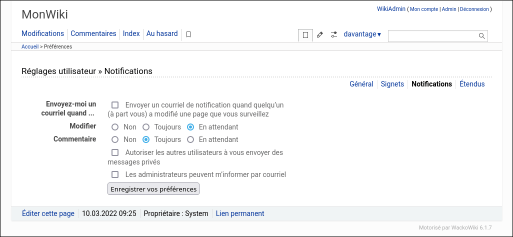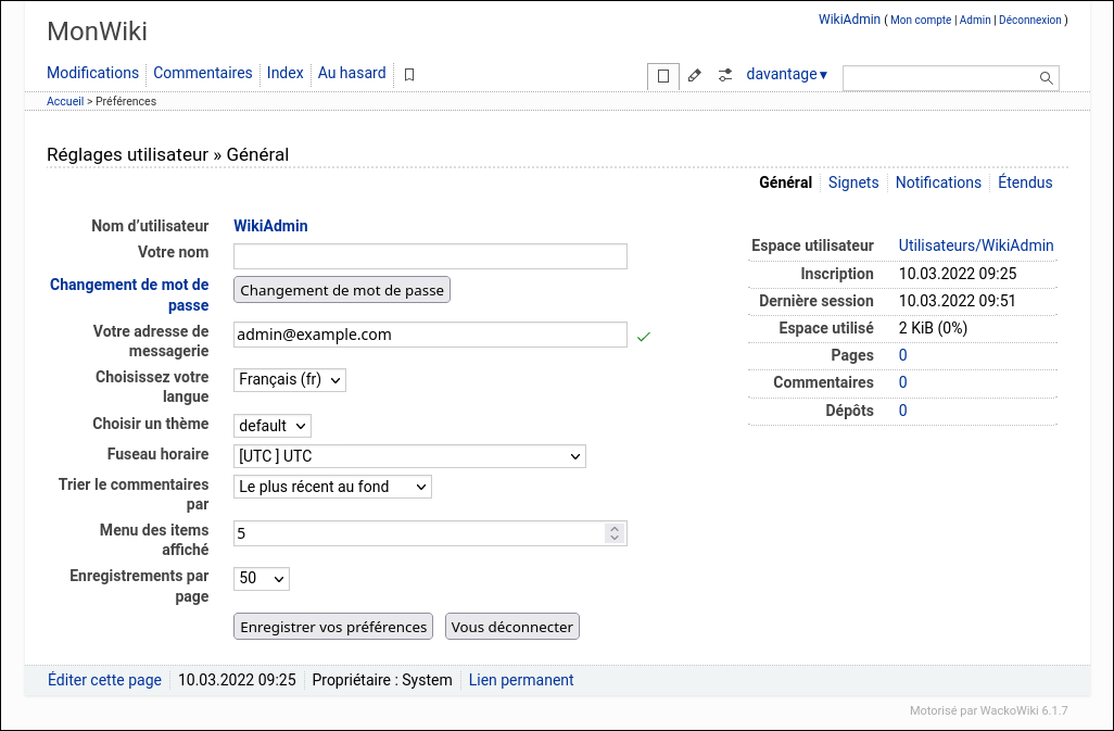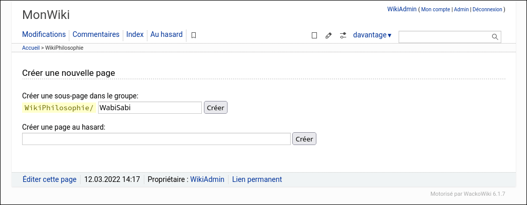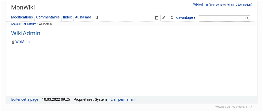 Ici vous pouvez trouver quelques captures d'écran qui vous aideront à démarrer WackoWiki.
