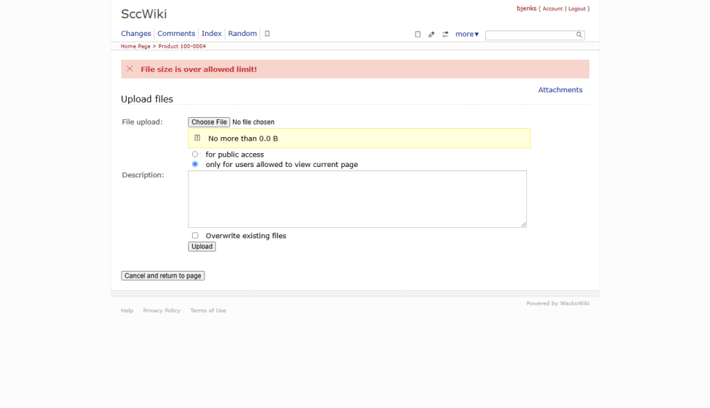 Then I changed “Maximum file size” to 1 MB and the user was allowed to upload the file.