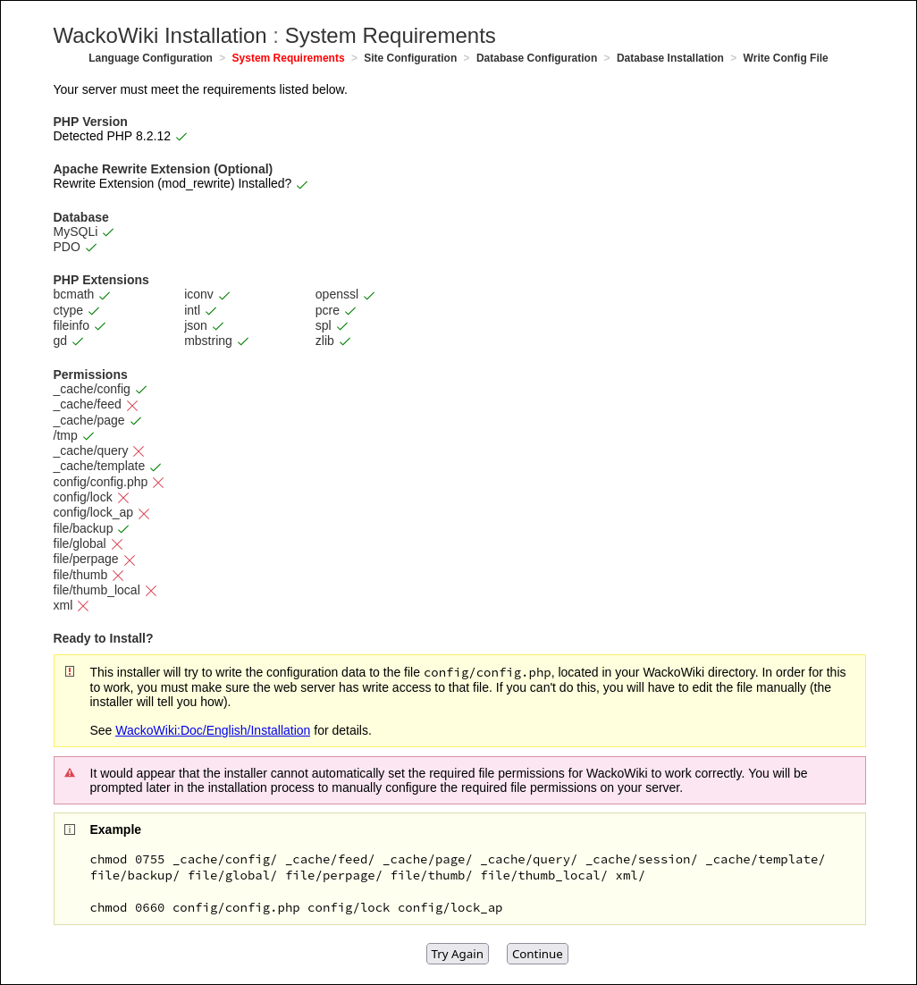 [WackoWiki installation step 2: system requirements]